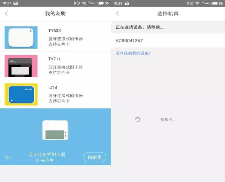 3.綁定機器:選擇我的友刷—天喻711型號或者艾創 M7 型號—初始化-手機藍牙和機器打開選擇對應的機器號選擇配對。