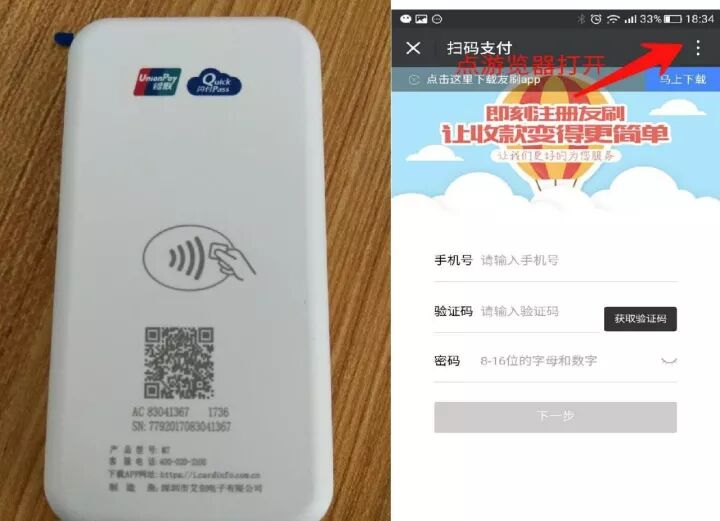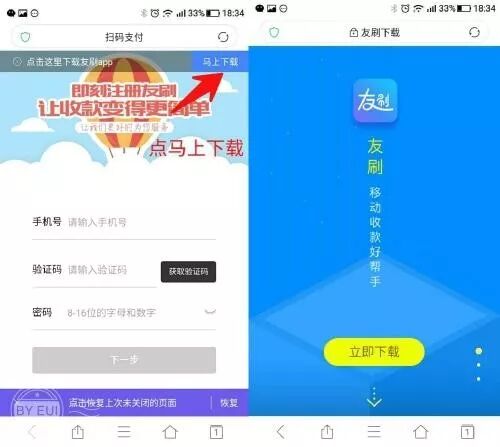 1、下載友刷APP:打開微信掃描機器背面二維碼—點擊右上角游覽器打開