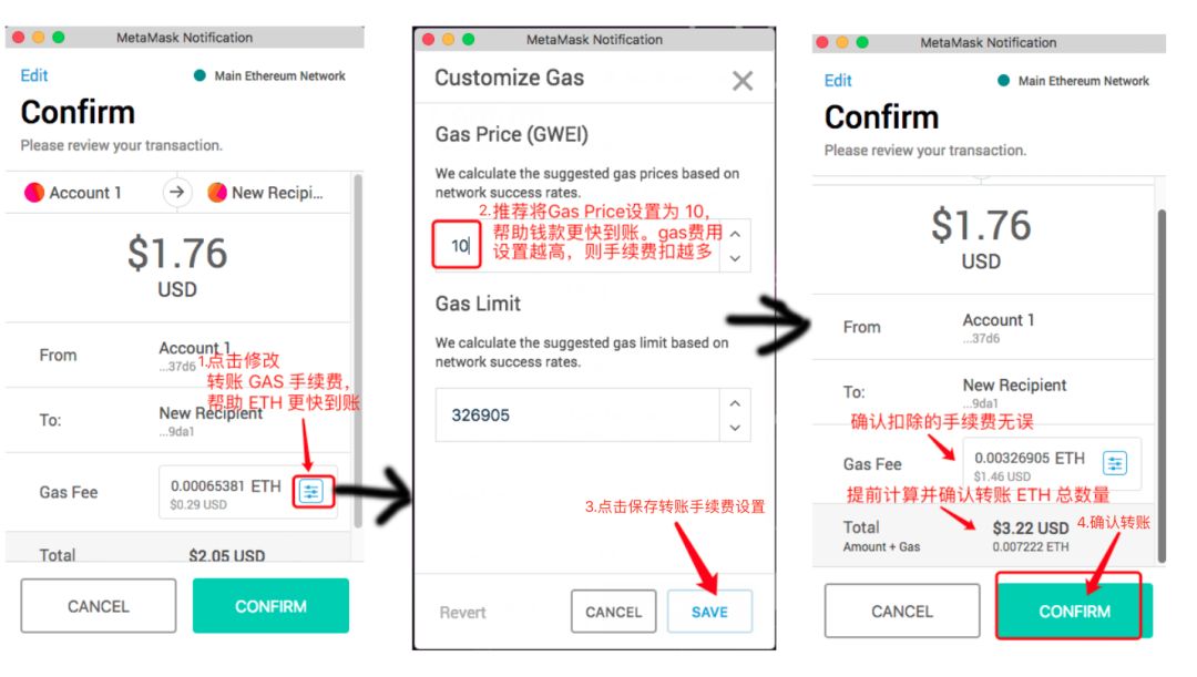 5.選擇 Send ETH並在Metamask錢包中確認。