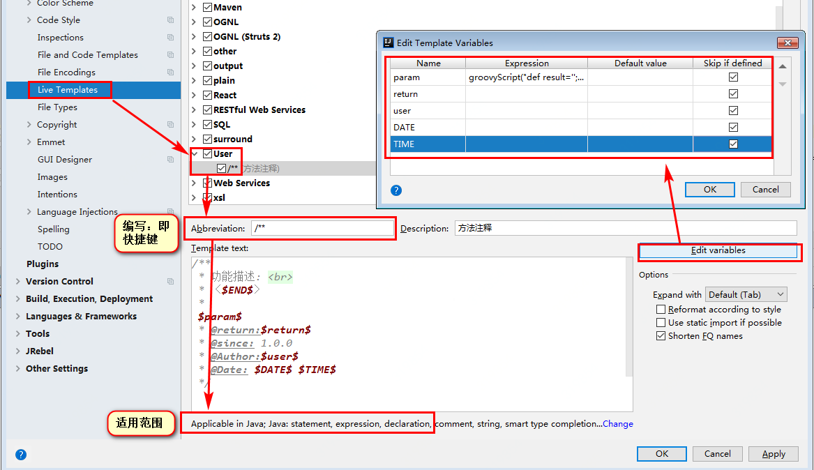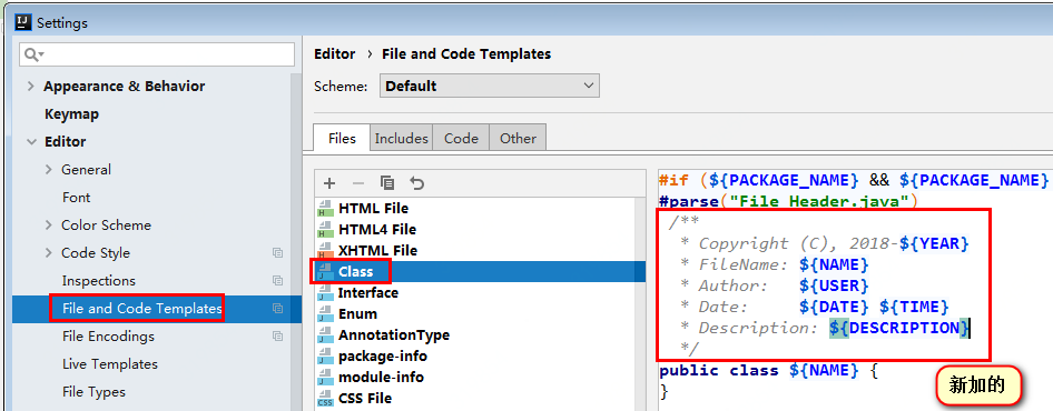 用於新建文件時的默認配置。(請注意這里修改的只是新建Class文件的配置,其他文件請自行更改)