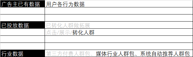數據來源有三種:廣告主自己的數據、投放媒體的數據和第三方數據。