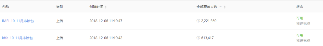 比如你上傳了一個app現有已經安裝過的用戶,把這類用戶打成一個包,就成為一個已安裝app人群包。