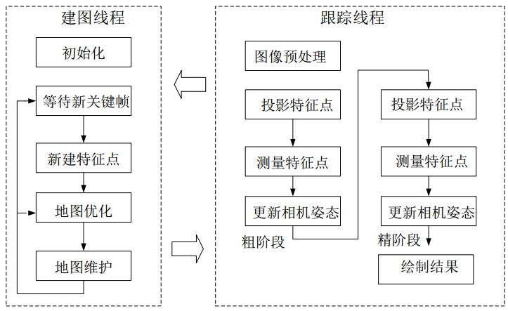 PTAM 主要分為跟蹤、 建圖兩部分。