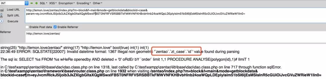 請求的時候加了一個單引號,並且加上referer,看一下報錯信息。