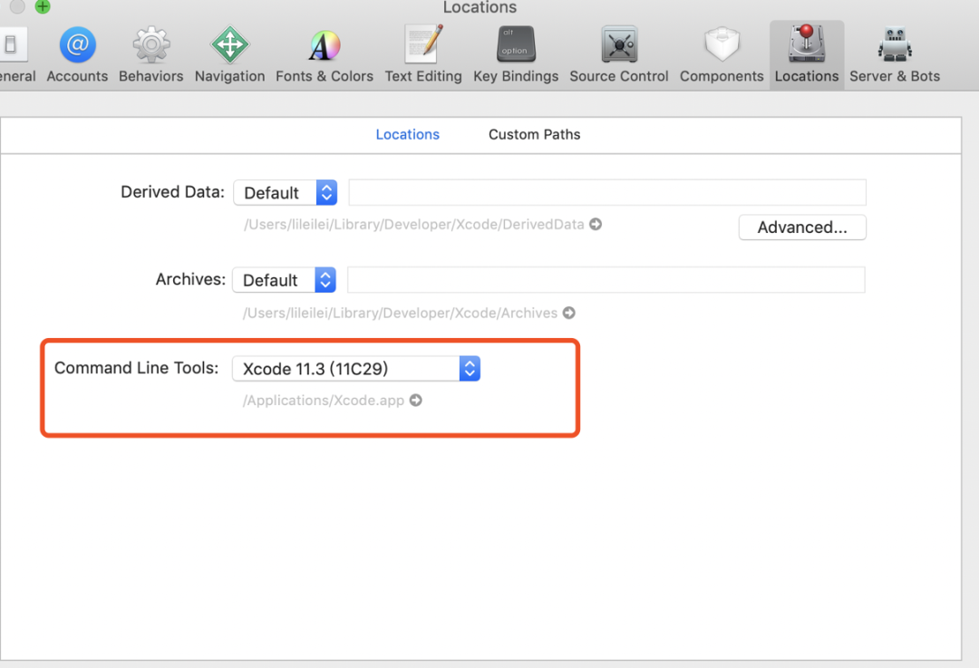 解決方法:打開Xcode軟件選中 Xcode>preferences>Locations里面,設置之后再重新運行檢查命令即可。