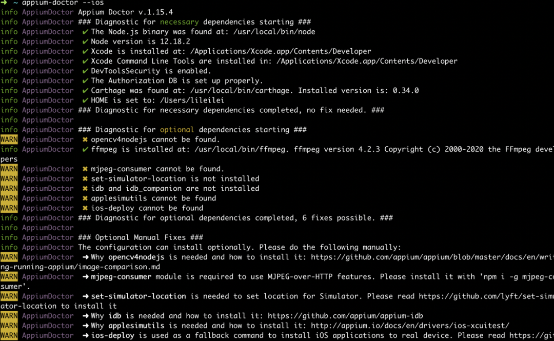 安裝依賴庫brew install libimobiledevice如果沒有安裝 libimobiledevice,會導致Appium無法連接到iOS的設備,所以必須要安裝,如果要在iOS10+的系統上使用appium,則需要安裝ios-deploynpm install -g ios-deploy #如果是iOS10以上的系統才需要安裝