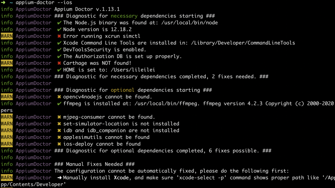 這個問題是在你檢驗Appium配置是否成功的時候出現,解決這個問題比較簡單,安裝這個Carthage就好了,方法: