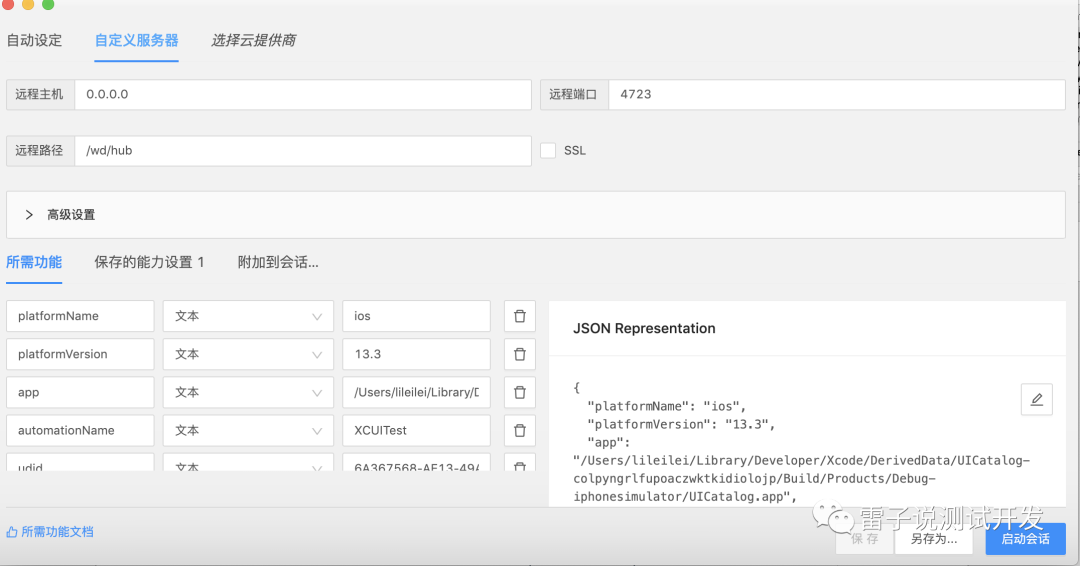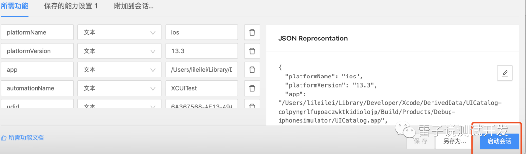 {"platformName": "ios","platformVersion": "13.3","app": "/Users/lileilei/Library/Developer/Xcode/DerivedData/UICatalog-colpyngrlfupoaczwktkidiolojp/Build/Products/Debug-iphonesimulator/UICatalog.app","automationName": "XCUITest","udid": "6A367568-AE13-49A0-BEE2-3B1AD623AB3E","deviceName": "iPhone 11 Pro Max"}