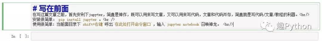 在寫這篇文章之前,首先安利下jupyter,簡直是神作,既可以用來寫文章,又可以用來寫代碼,文章和代碼並存,簡直就是寫代碼/文章/教程的利器。