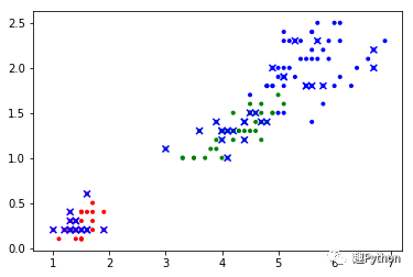 colors = {'Iris-setosa': 'blue', 'Iris-versicolor': 'green', 'Iris-virginica': 'red'}